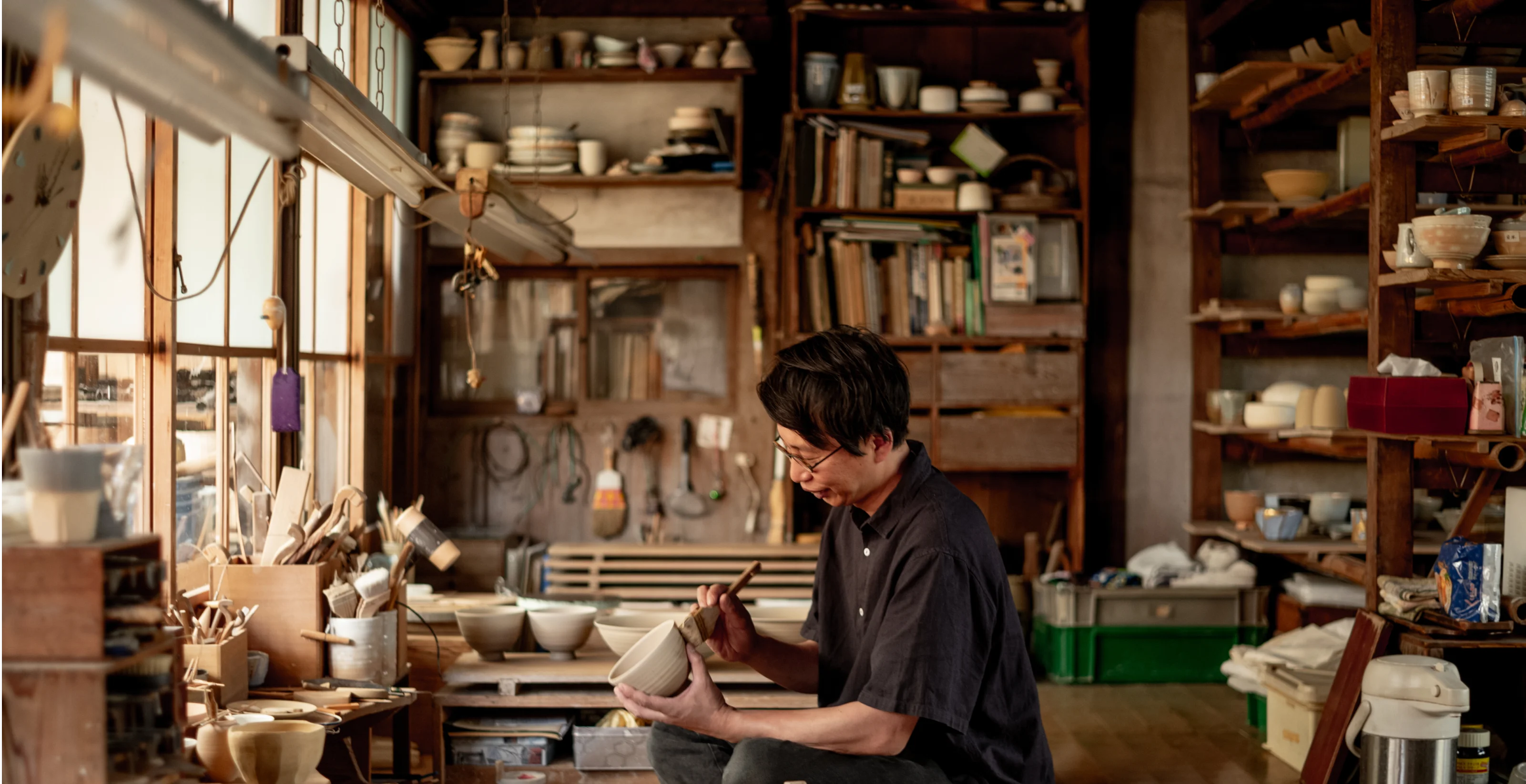 A journey into the soul of Japanese pottery: materials, techniques, tools.